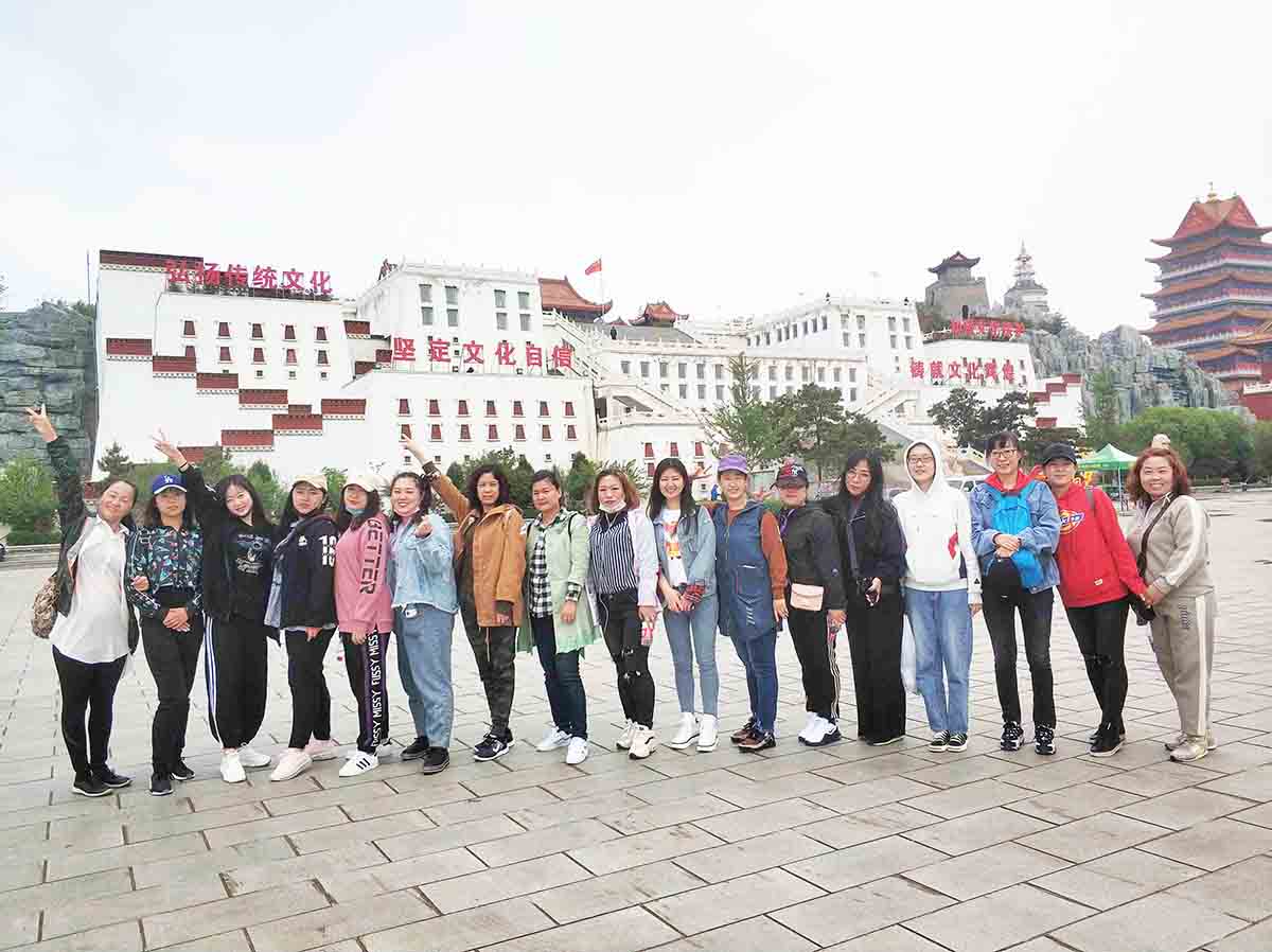征服九華山頂峰之后,我們順勢而下,游覽了著名的慈海寺。學(xué)著周圍虔誠燒香拜佛的樣子,我們滿懷虔誠,感受著古代建筑的大氣與恢弘,也為自己許下美好的愿望。我們接著向小布達(dá)拉宮出發(fā)了。一路我們徒步前進(jìn),小白因?yàn)槠綍r(shí)鍛煉的少,在下山的時(shí)候走的太急,腳抽筋了,經(jīng)驗(yàn)豐富的李主管立刻上來按摩,還囑咐多甩一甩腿。多虧她的悉心照顧,小白的腳好多了,不影響繼續(xù)步行。小白打趣說“自從來到九華山,腰不疼了,腿不抽了,心也不跳了,感覺越來越年輕!”大家都笑了,氣氛十分活躍。大家心情舒暢,開心地笑著、玩著,互相交流著,活動(dòng)氣氛熱烈,歡聲笑語聲在山林中飄蕩。沒多久我們就來到了小布達(dá)拉宮,領(lǐng)略西域文化的洗禮,感受別樣風(fēng)情。
